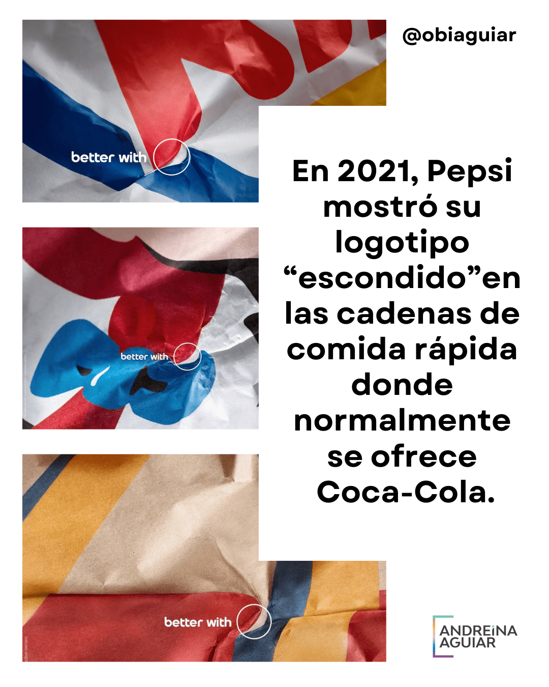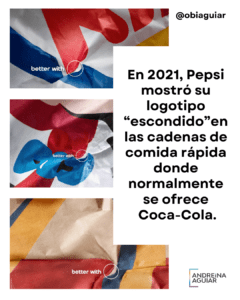 En 2021, Pepsi lanzó una campaña que mostraba su «logotipo escondido” en lugares donde normalmente se ofrece Coca-Cola.